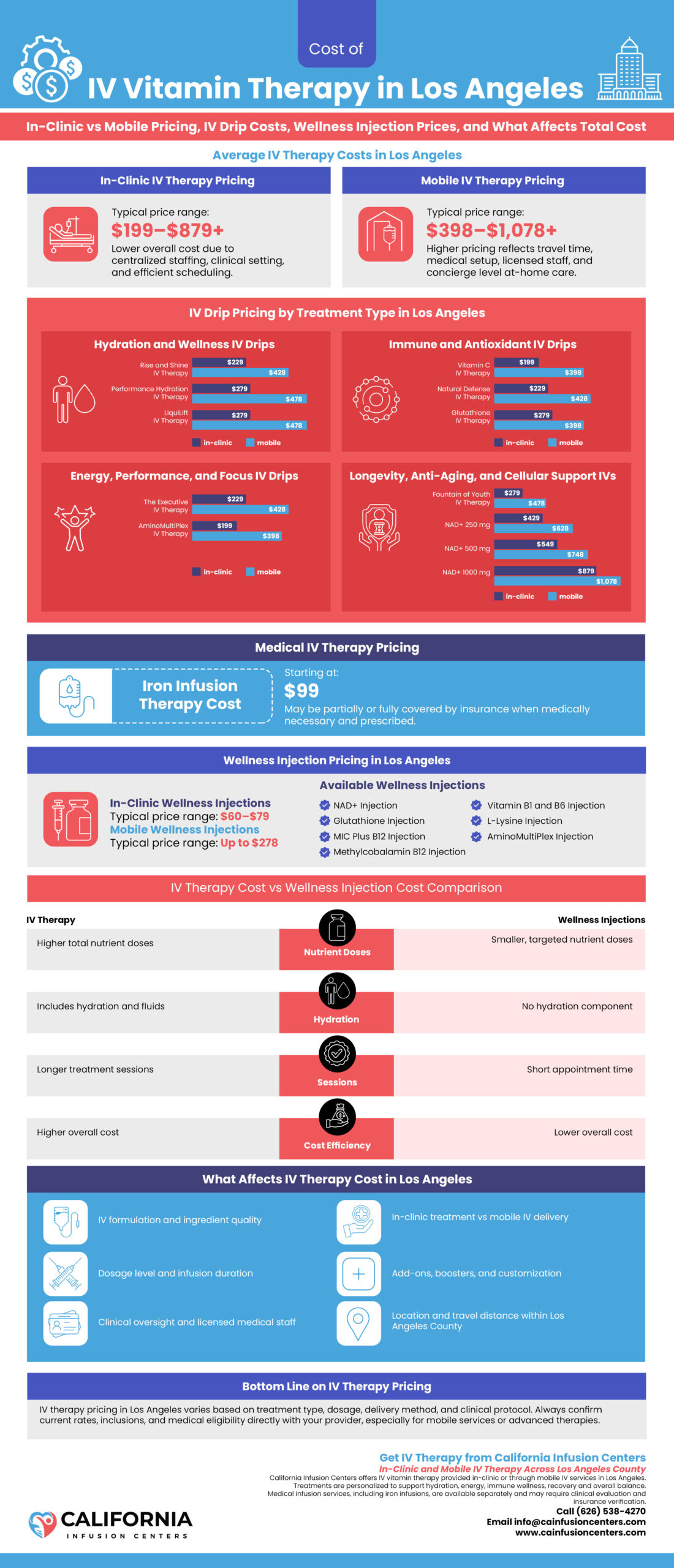This guide breaks down the cost of IV vitamin therapy in Los Angeles in a clear and comprehensive way. You will learn typical price ranges, how mobile IV therapy compares to in-clinic services, what factors influence cost, how injections fit into the picture and when insurance may apply. The goal is not to sell a specific treatment but to help you make informed decisions based on transparency and real world pricing.